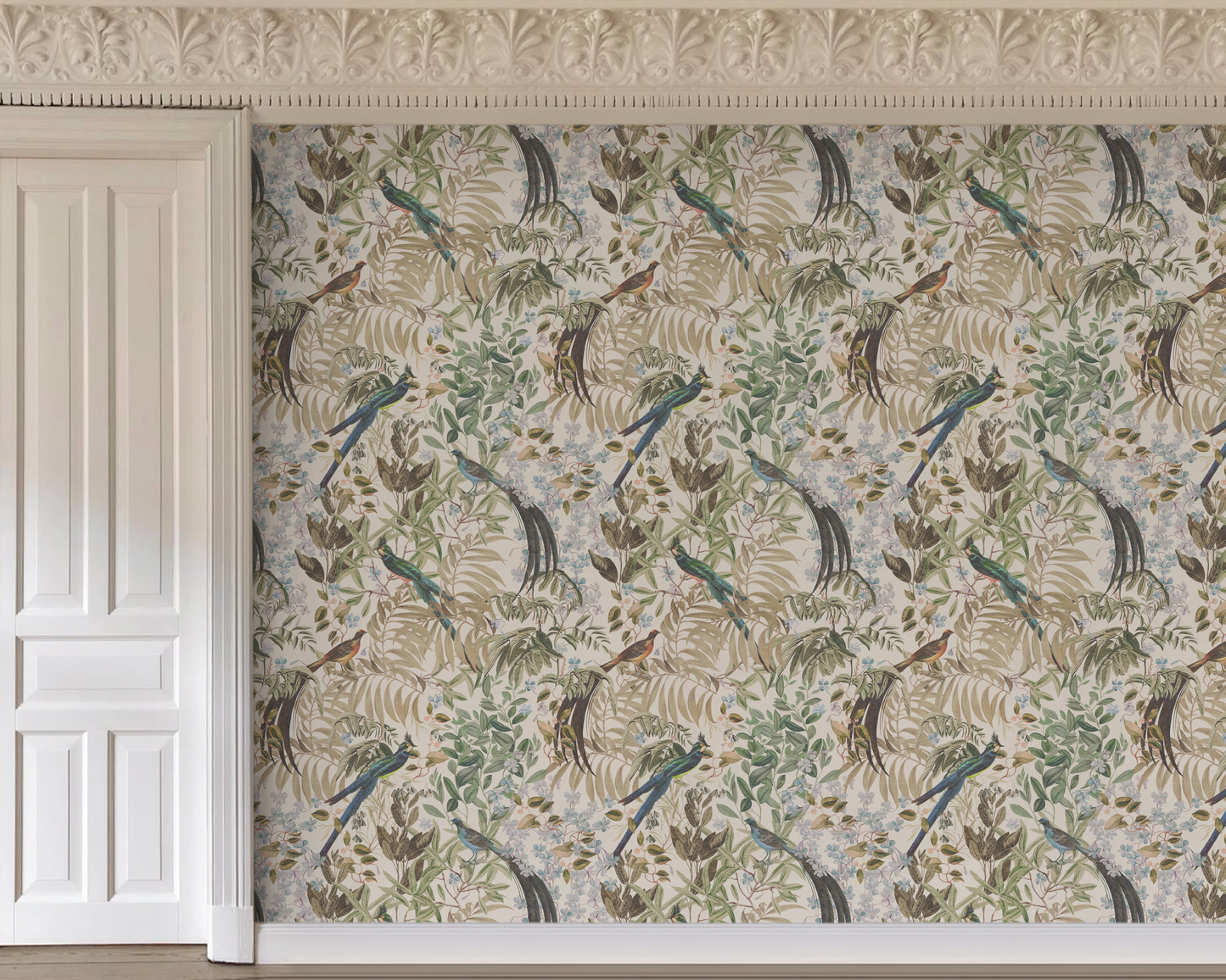 The Resplendent Woods Collection pays homage to one of South America's most beautiful tropical birds, the Resplendent Quetzal. Its vibrant and lush plumage illuminates this antique botanical woodland, full of ferns and flowers and brings the natural world just that little bit closer to home.